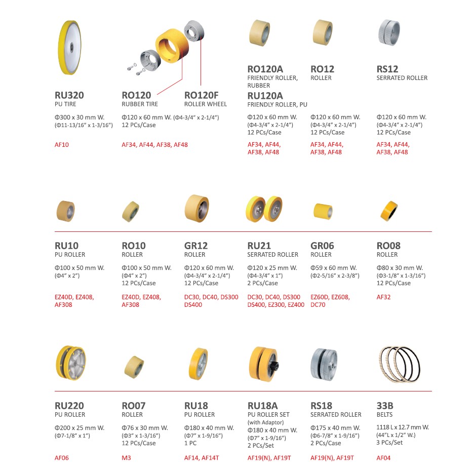 The rollers or belts can be removed with a minimum of effort. Replacement can be purchased separately, with replacement times dependent on roller material, rate of use, and workpiece material.